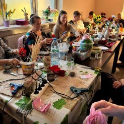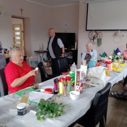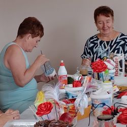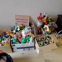 w dniu 27.05.2024r prowadzimy kiermasz upominków - kwiaty , misie, obrazki haftowane nićmi, haft koralikowy, flakony z kwiatuszkami oraz prowadziliśmy warsztaty robótek szydełkowych.