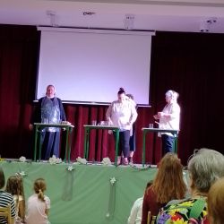 12.03.2024 przygotowanie fantów na licytacjęl dla tracącej wzrok Marysiwieczorem zaproszeni zostaliśmy na czekoladowy Dzień Kobiet do Szkoły podstawowej w Poroninie.