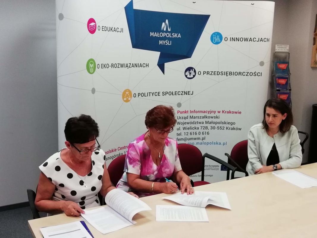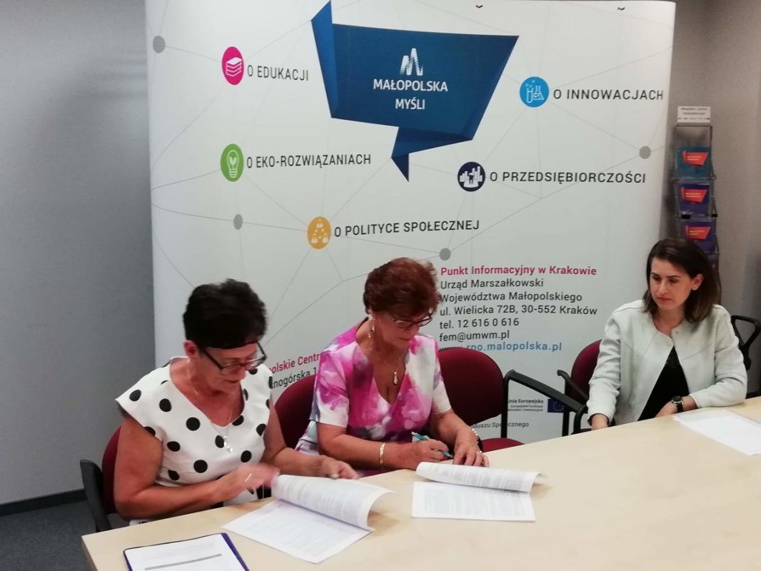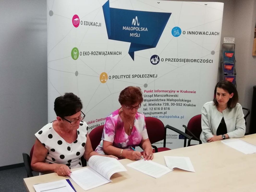 W dniu dzisiejszym Przewodnicząca PZERiI Maria Czernik oraz Skarbnik Elżbieta Mucha w Małopolskim Centrum przedsiębiorczości w Krakowie podpisały umowę na dofinansowanie utworzenia Ośrodka Wsparcia Dziennego dla 30 osób starszych, samotnych i niepełnosprawnych pn. Aktywny senior Tatrzański w Partnerstwie z Burmistrzem Miasta Zakopane. Ośrodek będzie się mieścił w budynku Zakopiańskiego Centrum Edukacji przy ul. Kasprusie 35a w Zakpanem.