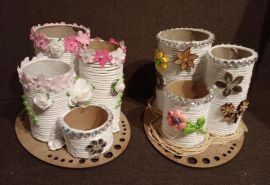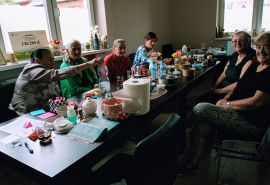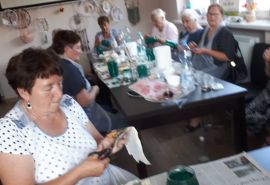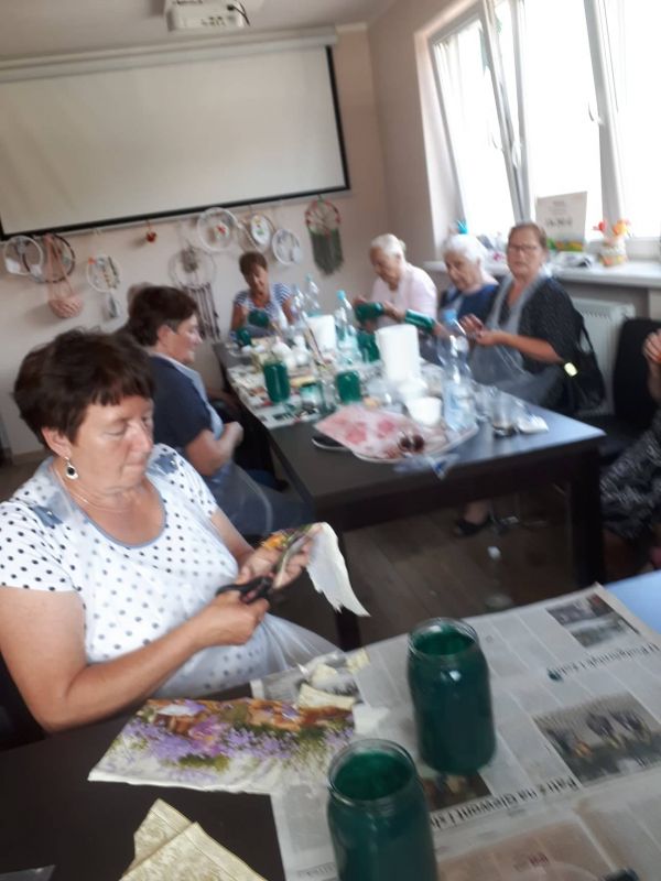 Warsztaty Zajęciowe w klubie Senior + w Białym Dunajcu - w lipcu wykonywanie organizerków na biurko oraz pieski miniaturki z jajek niespodzianek i malowanie decopage, a w sierpniu kwiatów.