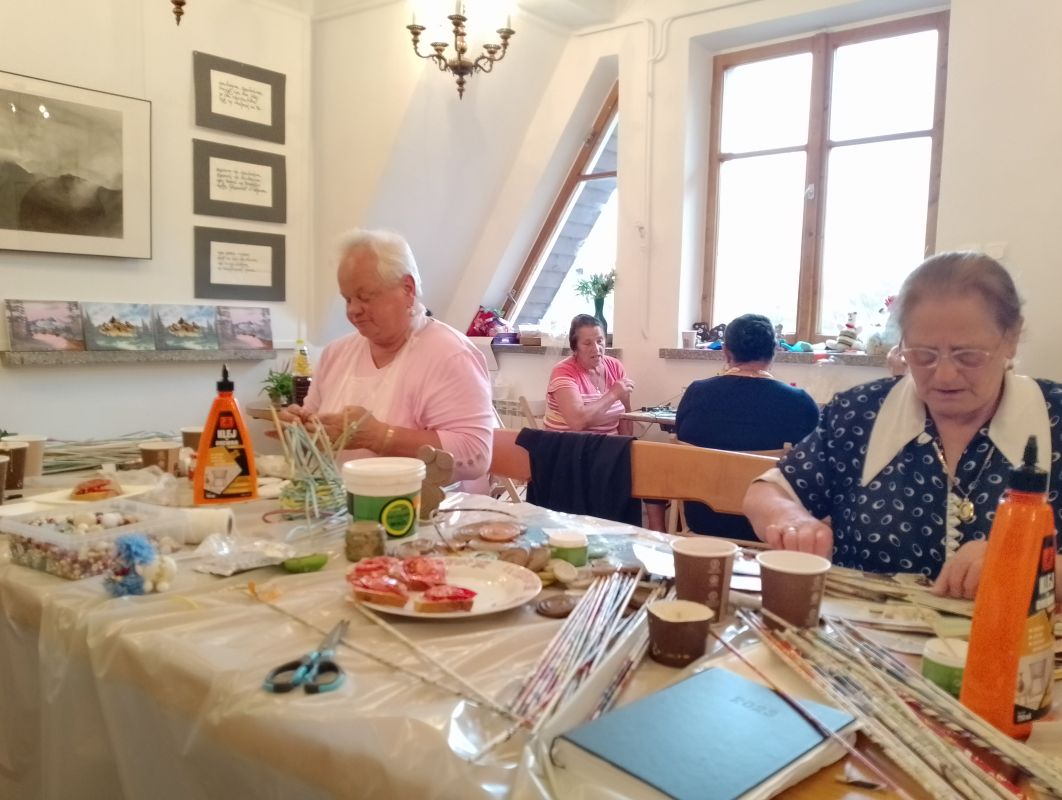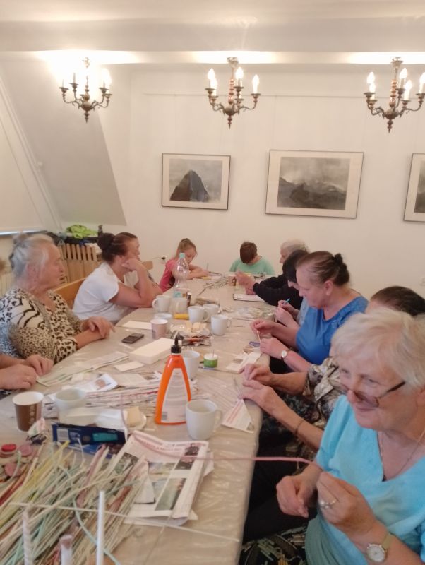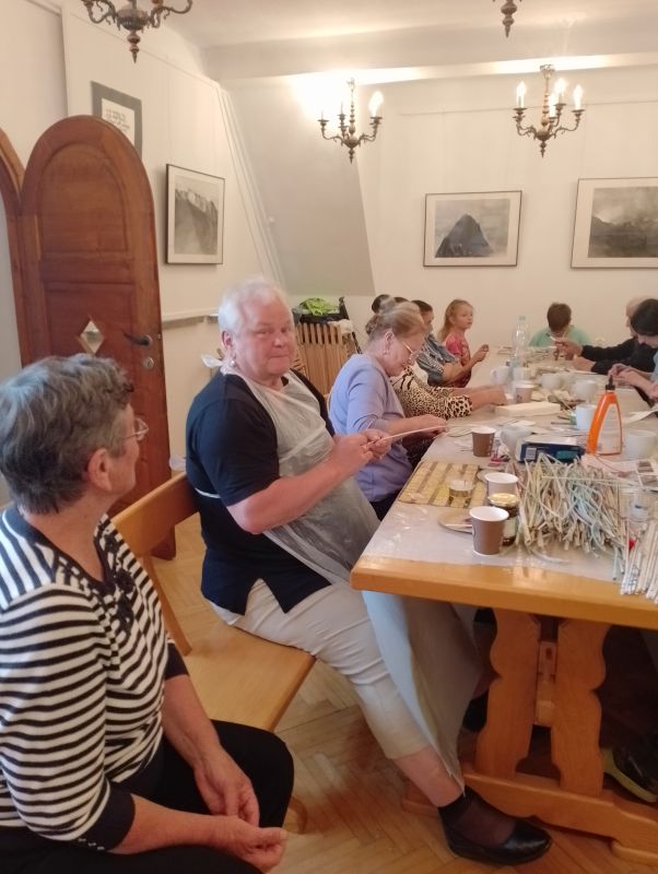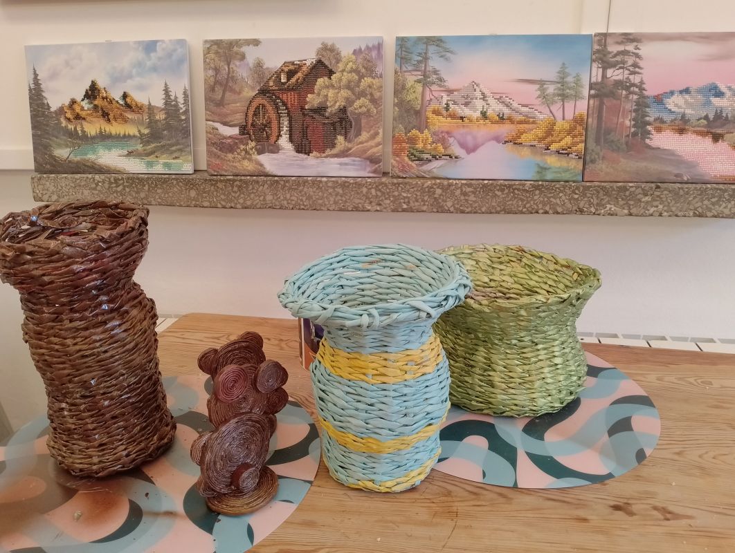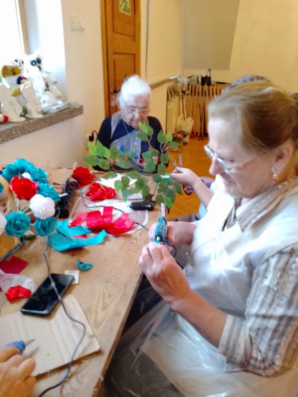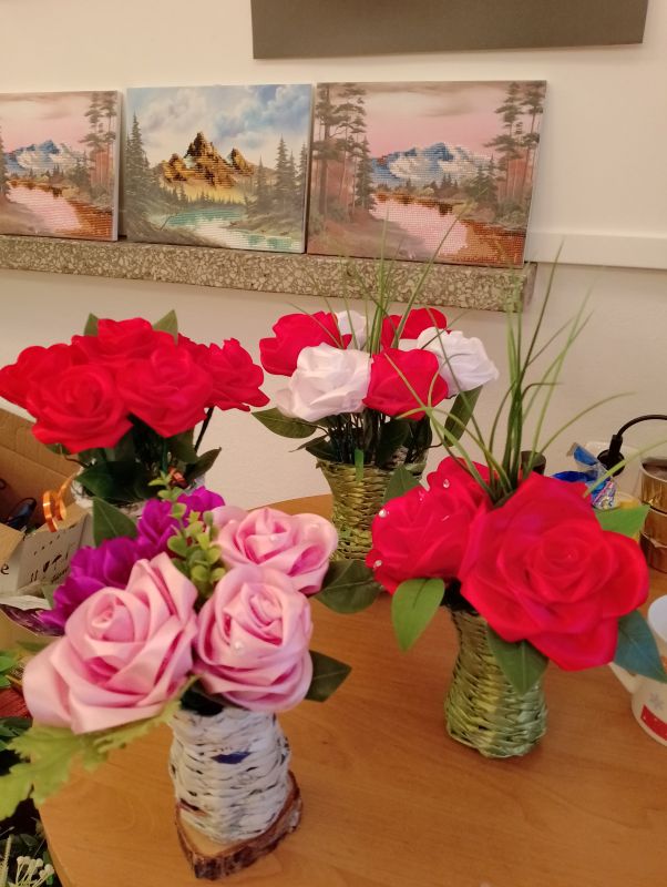 5 zrobiliśmy również 350 róż ze wstążki jako upominki dla Seniorek z okazji Powiatowego Dnia Seniora dla pań oraz 40 obrazków o tematyce górskiej wykonanych metodą haftu diamentowego,