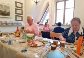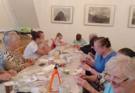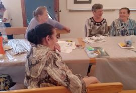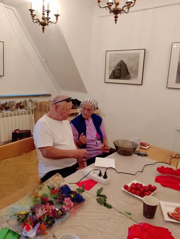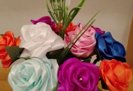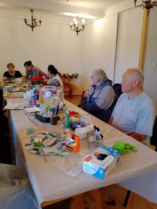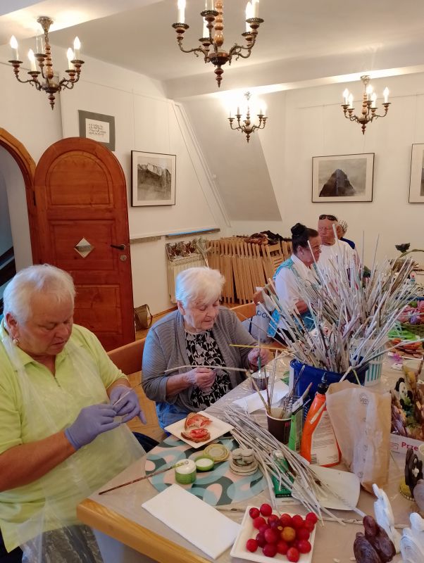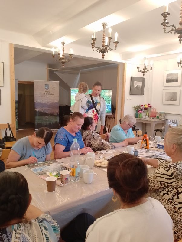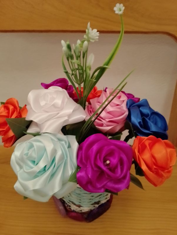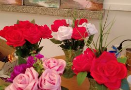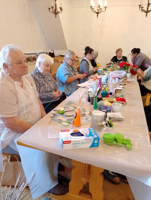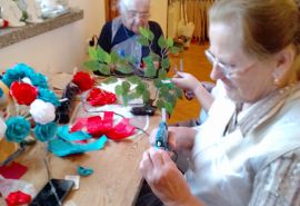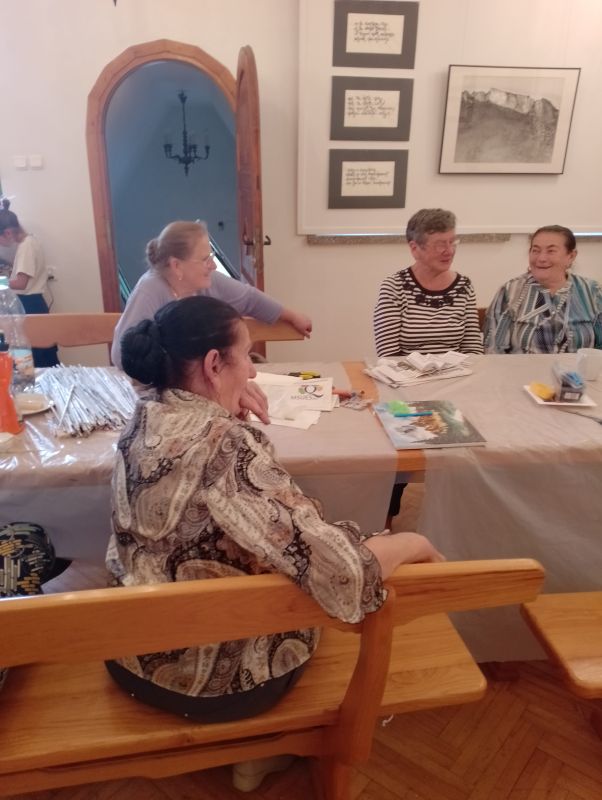 5 zrobiliśmy również 350 róż ze wstążki jako upominki dla Seniorek z okazji Powiatowego Dnia Seniora dla pań oraz 40 obrazków o tematyce górskiej wykonanych metodą haftu diamentowego,