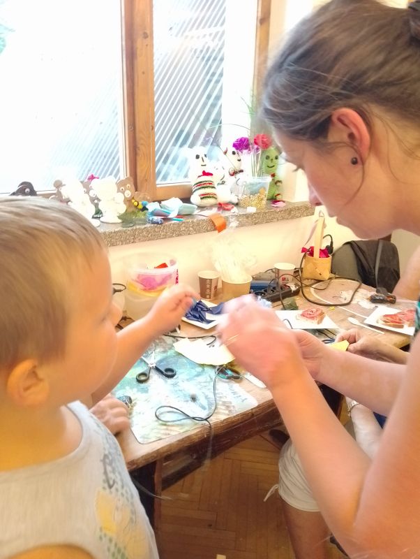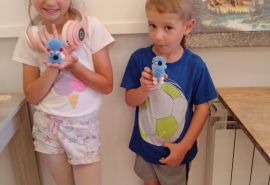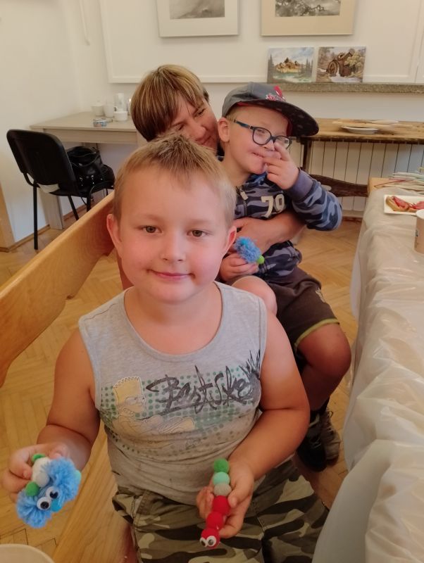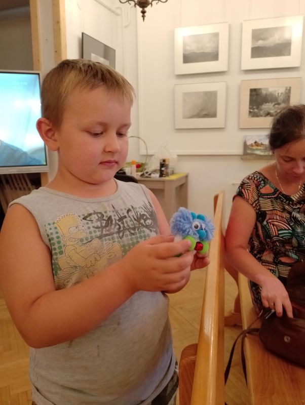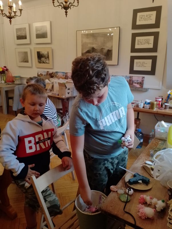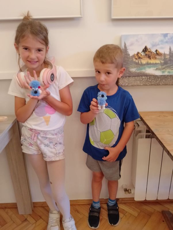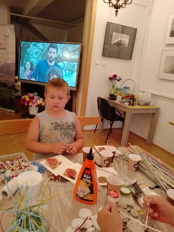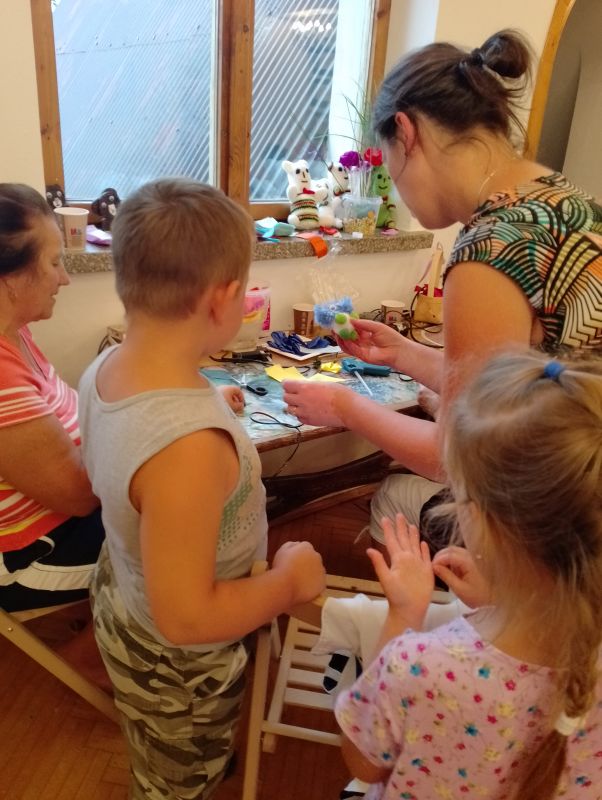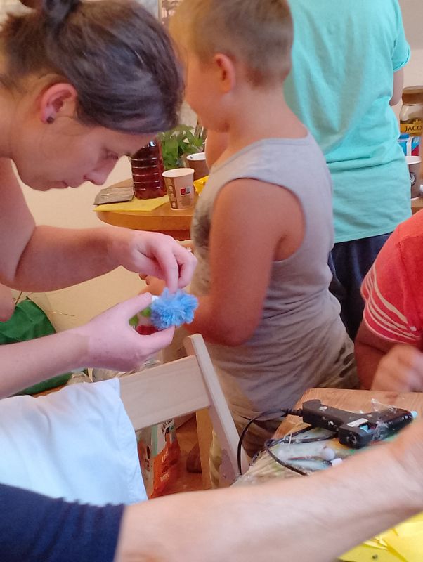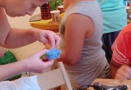 1.Wakacyjne warsztaty integracyjne z dziećmi i młodzieżą - wykonywanie piesków z plastikowych opakowań niespodzianek,