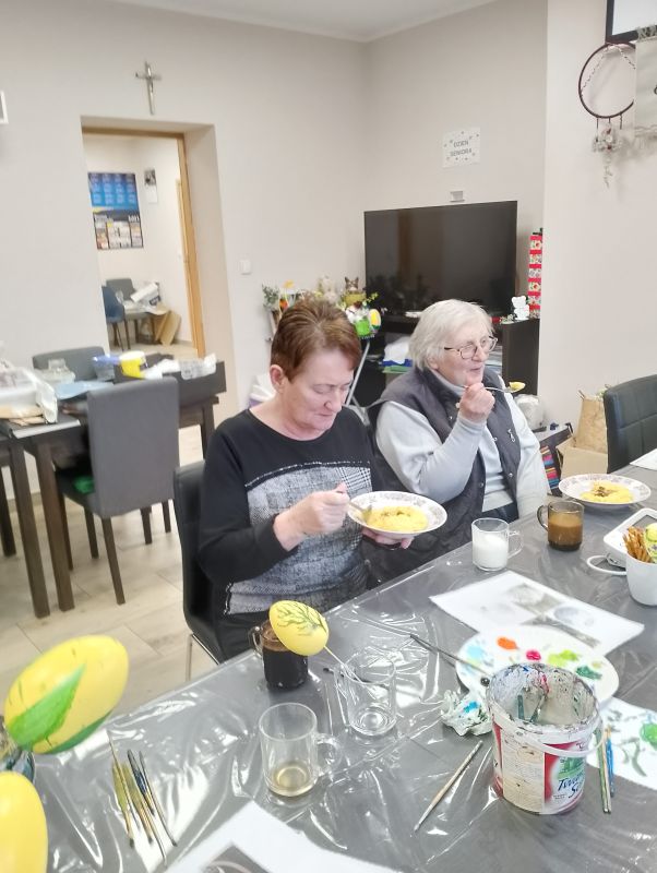 23.02.2024 zajęcia kulinarne gotowanie kloski kukurydzianej ze skwarkami, oraz dekorowanie jajek i innych ozdób świątecznych