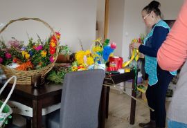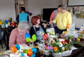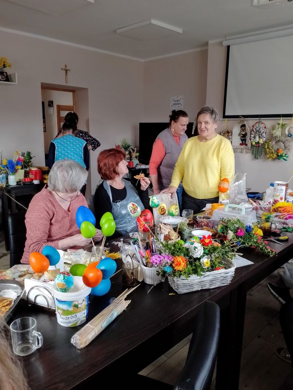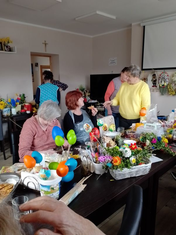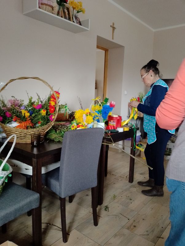 22.03.2024 odbyło się czytanie poszji Pani Zofii Mieszczak - warsztaty kulinarne - pierogi ruskie, wykonywanie palm dalszy ciąg dekorowania jajek i innych ozdób , koronka do miłosierdzia Bożego.
