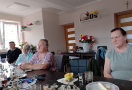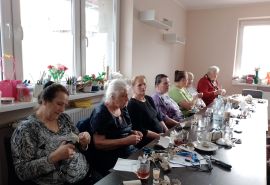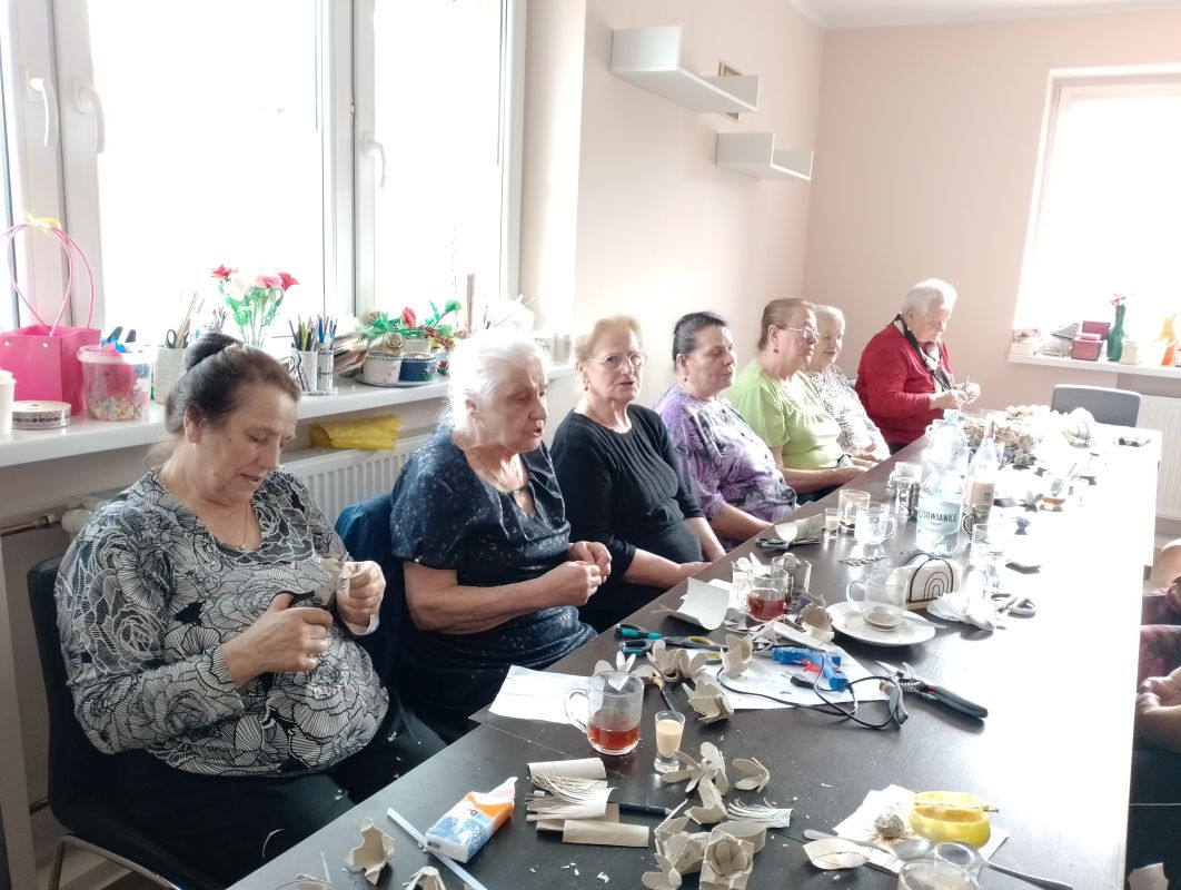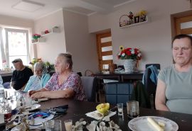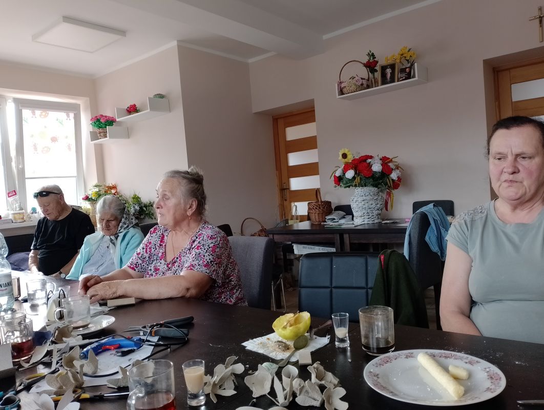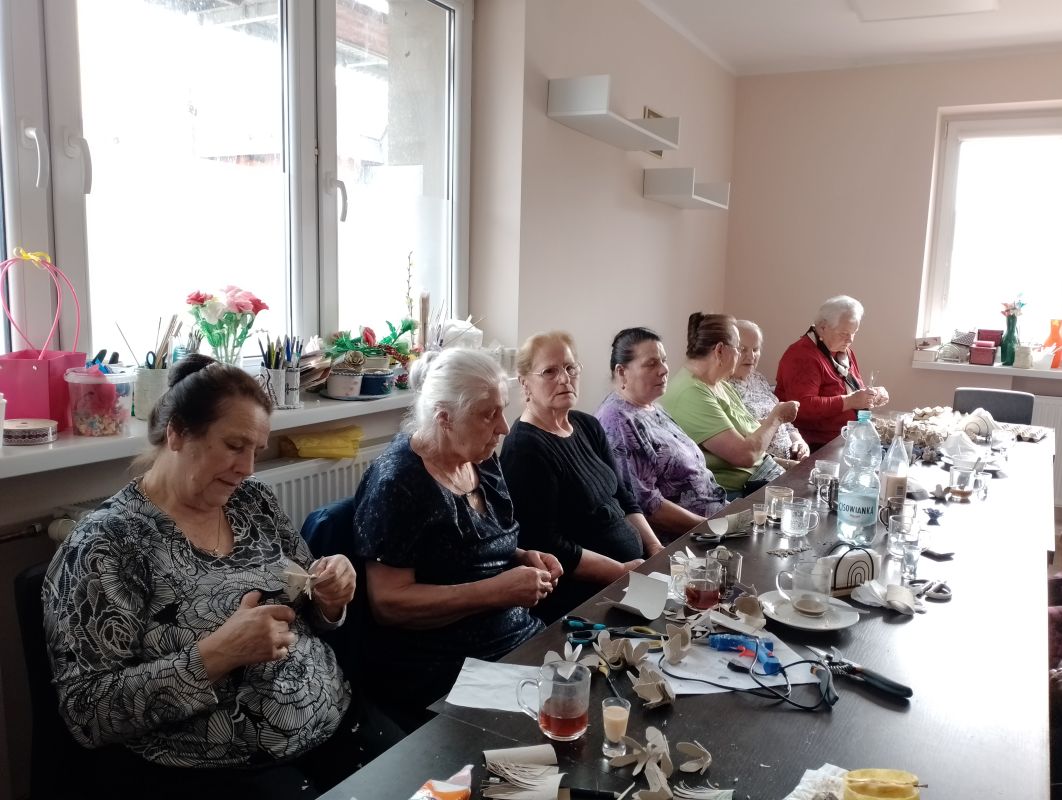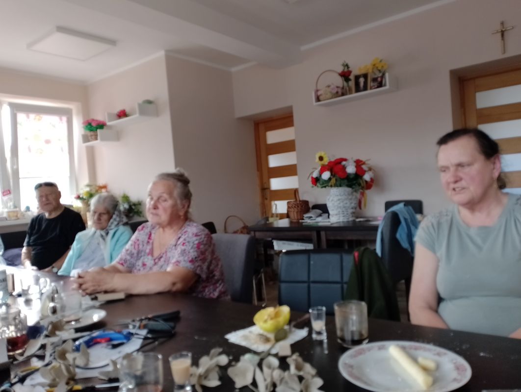 08.04.2024 rozmowy i dyskusja nad programem pracy na warsztatach - w związku z informacją jaką przekazała nam Pani Agnieszka, że nosi się z zamiarem zmiany miejsca zamieszkania - powinniśmy skorzystać z jej umiejątności wykonywania kwiatów polnych z recyklingu i poprosiliśmy o kilka zajęć abyśmy mogli nauczyć się robić tak piękne kwiaty, a poza tym odmawialiśmy koronkę do miłosierdzia Bożego` Na zakończenie dnia śpiewaliśmy piosenki biesiadne.
