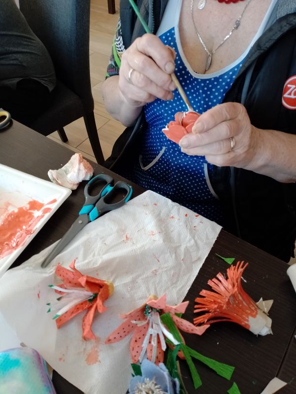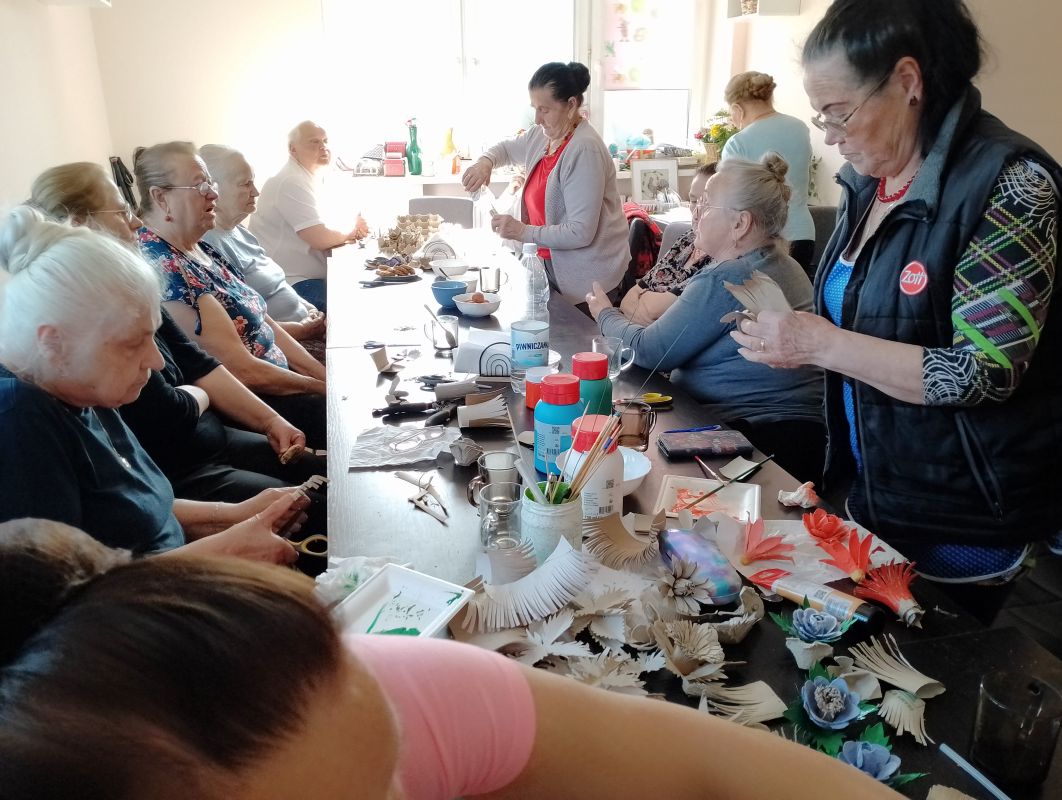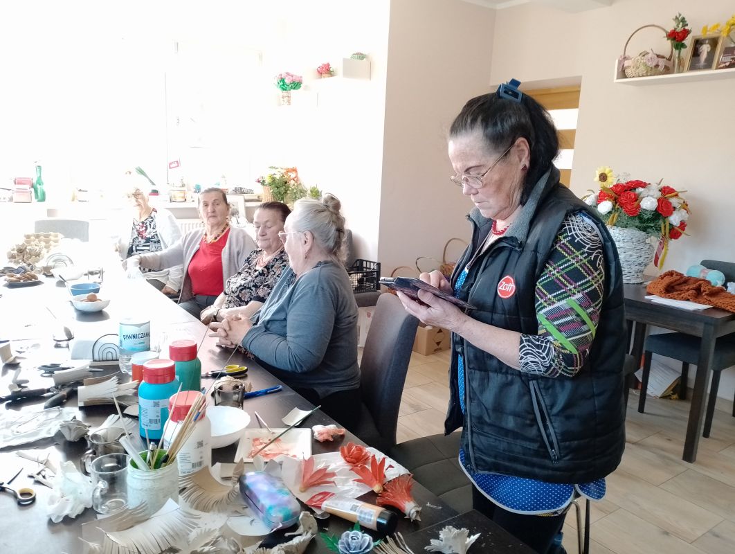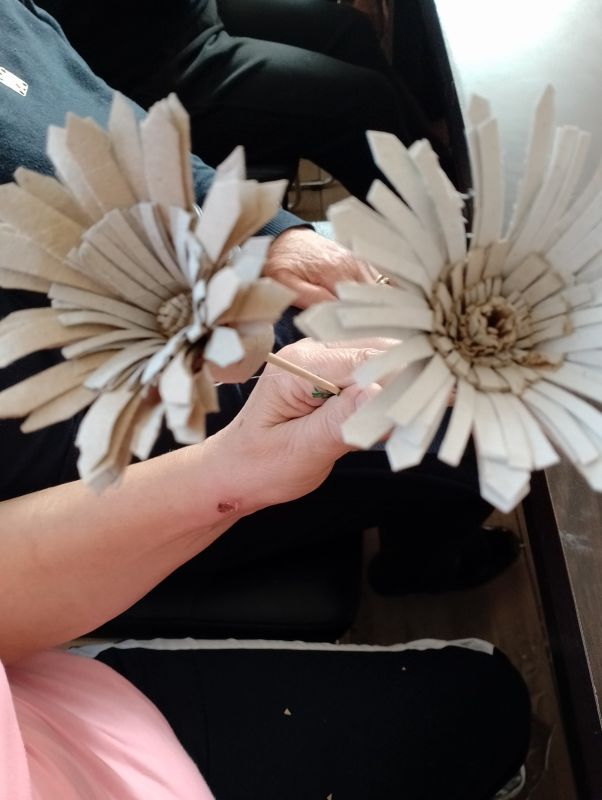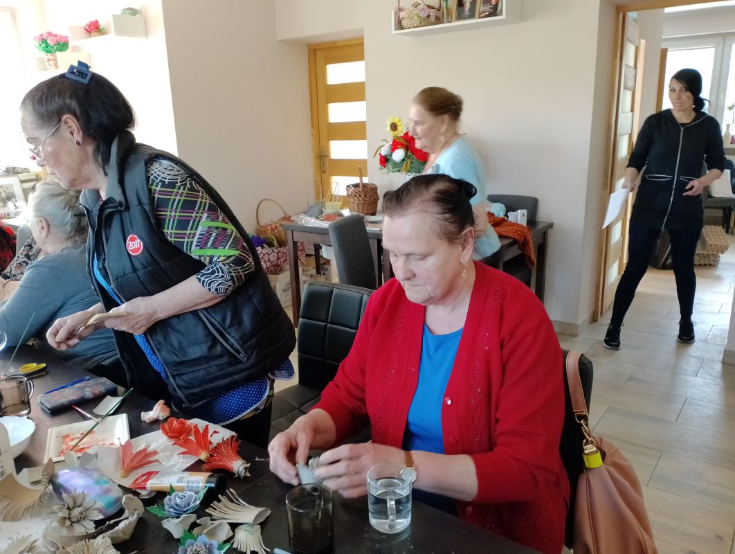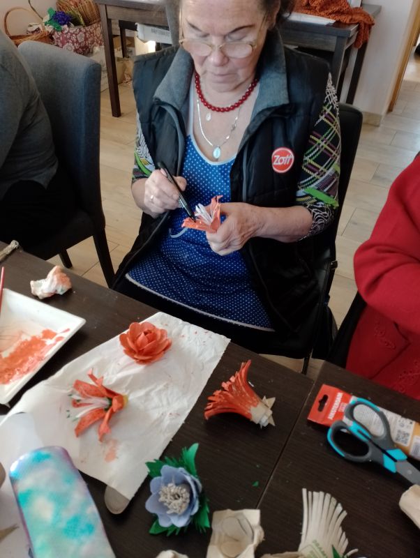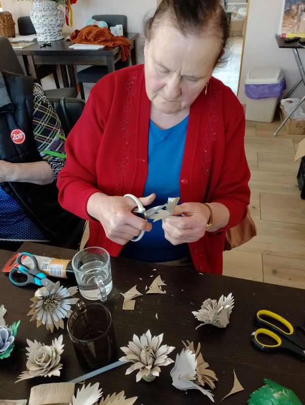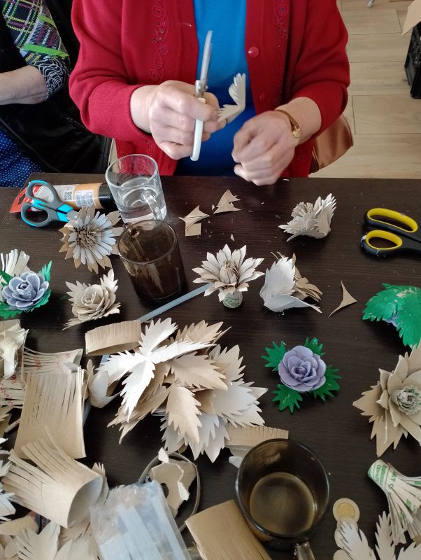 12.04.2024 ciąg dalszy nauki wykonywania kwiatów polnych z recyklingu oraz króliczki z włóczki.