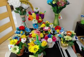 24.05.2024r. wykańczanie i pakowanie wykonanych upominków na piknik rodzinny w dniu26.maj 2024.