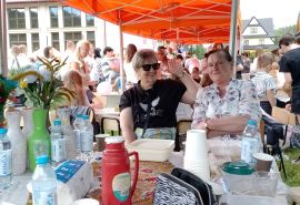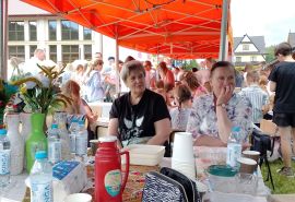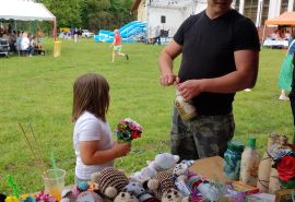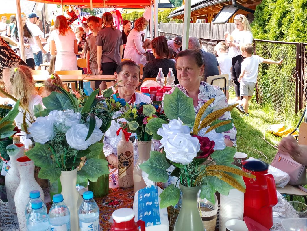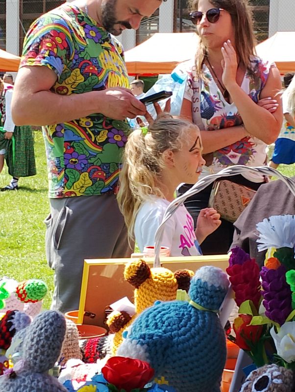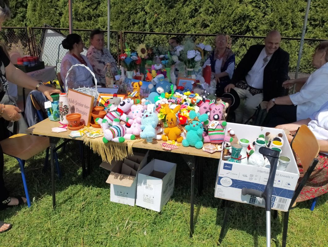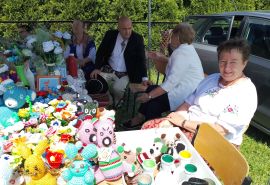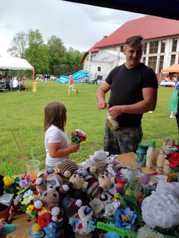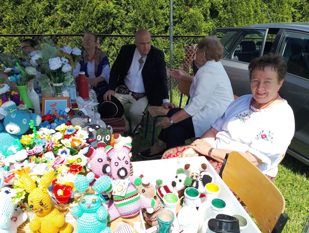 w dniu 27.05.2024r prowadzimy kiermasz upominków - kwiaty , misie, obrazki haftowane nićmi, haft koralikowy, flakony z kwiatuszkami oraz prowadziliśmy warsztaty robótek szydełkowych.