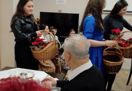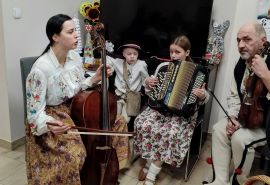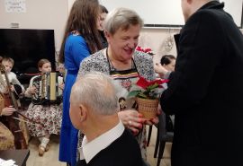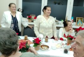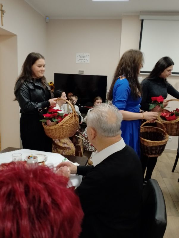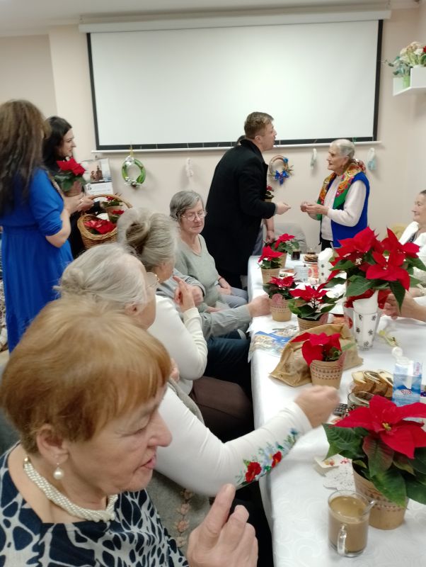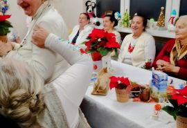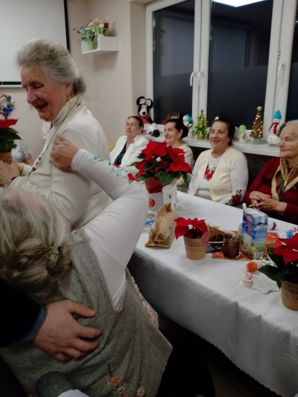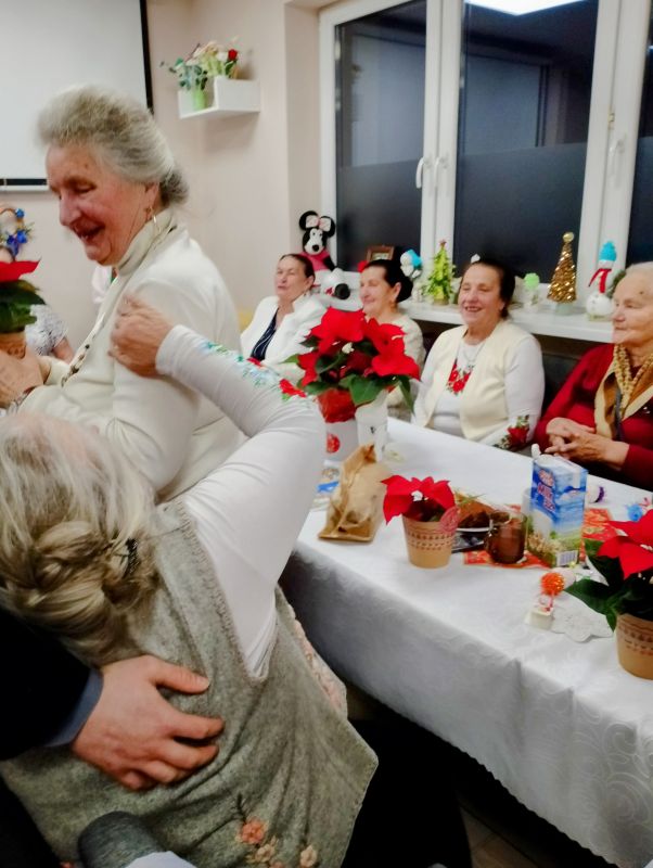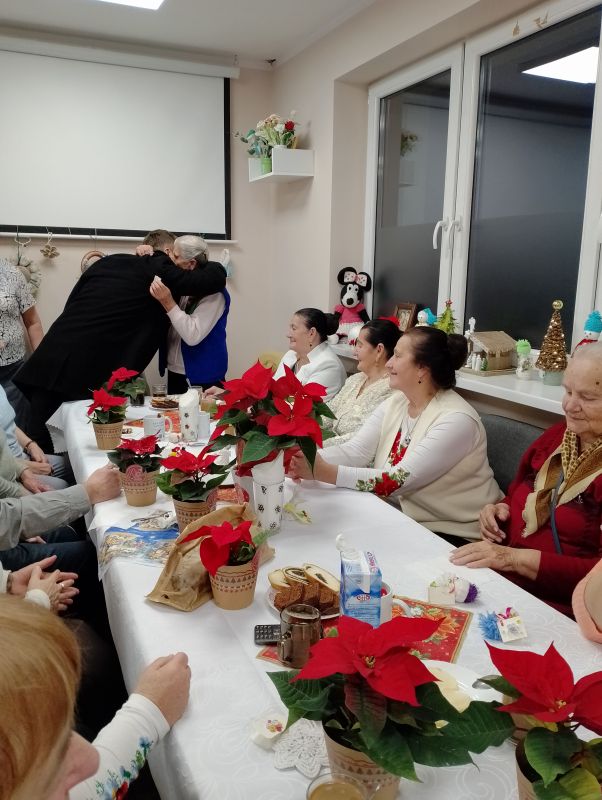 Spotkanie Wigilijne w klubie Senior + w Białym Dunajcu - wspólne kolędowanie z rodziną Pana Janusza Pilnego oraz z przyjaciółmi - Wójtem panem Marcinem Gandera, Pani Dyrektor Biblioteki Panią Bogusią Kułach, z Zespołem Jedla w dniu 19.12.2024r.