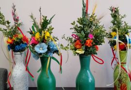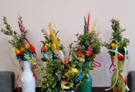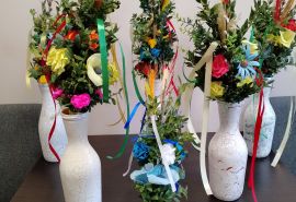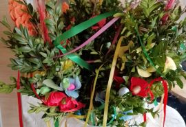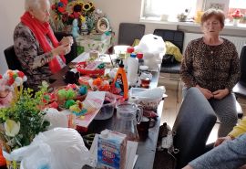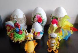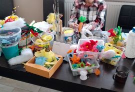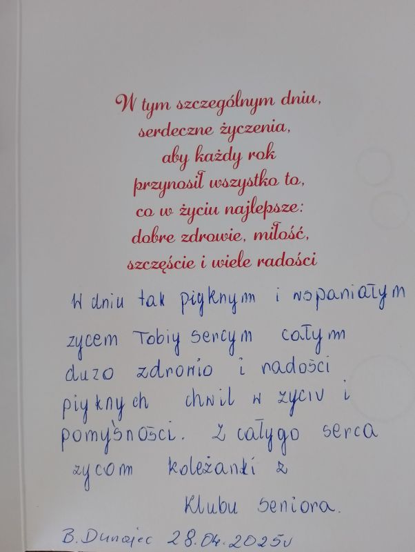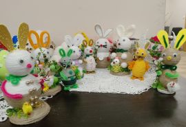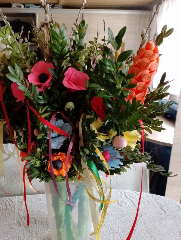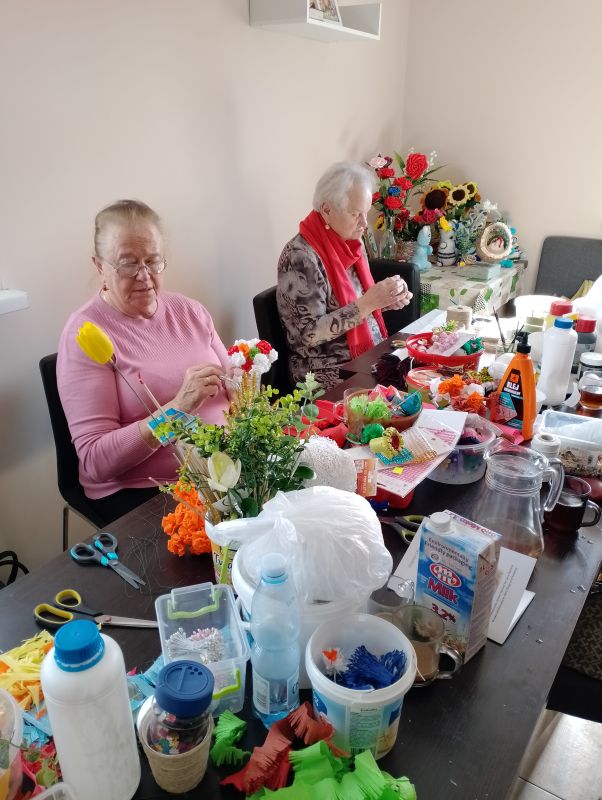 1. 01.04..2025 uczestniczyliśmy w spektaklu teatralnym pt."Po sąsiedzku" w wykonaniu artystów z Bachledówki w M D K w Nowym Targu 2. 02.04.2025 Warsztaty wokalne, Koncert chóru kanto z okazji 20 rocznicyśnierci Ojca Św. jana Pawła II w kościele M.B.Anielskiej 3. 04.04.2025. warsztaty manualne przygotowanie kwiatów do palm oraz ozdób wielkanocnych. Gimnastyka rekreacyjna, 4. 07.04.2024 Warsztaty manualne - plastyczne, malowanie pisanek. 5. 09.04.2025 Wykonywanie palm i ozdób świątecznych. 6. 11.04.2025 kiermasz palm i ozdb wielkanocnych z którego dochód przeznaczymy na bieżącą działalność klubu zakup materiałów. 7. 14.04.2025 wykonywanie upominków dla dzieci na wielką sobotę za pięknie przygotowane kosołecki ze święconką. - Kurki wykonane szydełkiem, oraz króliczki ,steropianowe jajka malowane. 8. 16.04.2025 wykonywanie upominków cd. oraz gimnastyka. 9. 18.04.2025 dokończenie dekorowania upominków 60 szt. oraz przekazanie do GOK skąd zostaną przekazane dzieciom w sobotę po poświęceniu koszyczków. Jury w składzie Ks. Proboszcz Jan Dolasiński, Prof. doktor Habilitowany U.J. Pani Stanisława Trebunia Staszel, Wójt Gminy Biały Dunajec Marcin Gandera,, Dyrektor Biblioteki Im Zofii Solarzowej Pani Bogumiła Kułach, Dyrektor GOK Biały Dunajec Pan Bartłomiej Kudasik, Klub Seniora z białego Dunajca reprezentowała Pani Zofia Mieszczak oraz Pani Ludwina Cudzich najstarsza członkini klubu.